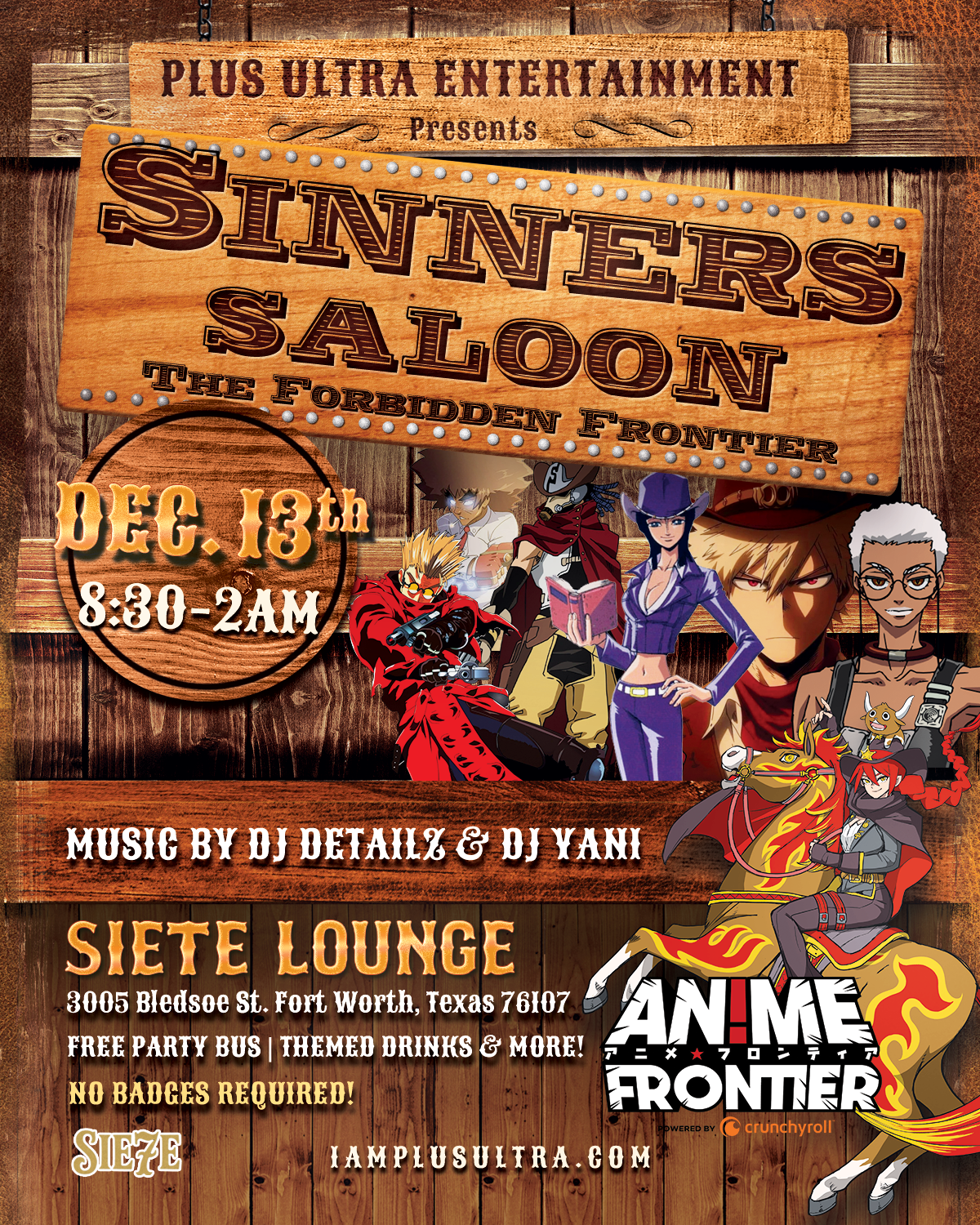 December 13 @ 8:30 PM - December 14 @ 2:00 AM Anime Frontier Official Saturday Afterparty Siete Forth Worth 3005 Bledsoe st., Forth Worth, TX, United States